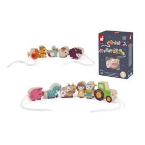 2 jeux en 1 pour les tout-petits avec de jolies des figurines en bois pour se raconter plein d?histoires et développer son imagination. Pour les plus grands, des perles à enfiler pour développer sa motricité, avec 2 grands cordons avec embouts rigides pour faciliter le passage dans les perles. Les perles figurines en bois mesurent entre 35 x 35 mm (la poule) et 66 x 55 mm (le tracteur). Contient : 11 perles et 2 cordons beiges avec embouts rigides (longueur 60 cm).
