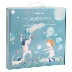Le Set de Bulles Géantes de Moulin Roty est un jeu qui amusera toute la famille car il n'y a pas d'âge pour faire des bulles ! Il se compose de six accessoires différents pour faire des bulles de toutes tailles et de toutes formes. Vous trouverez également à l'intérieur la recette pour réussir les bulles à coup sûr ainsi qu'une coupelle pour accueillir le liquide.